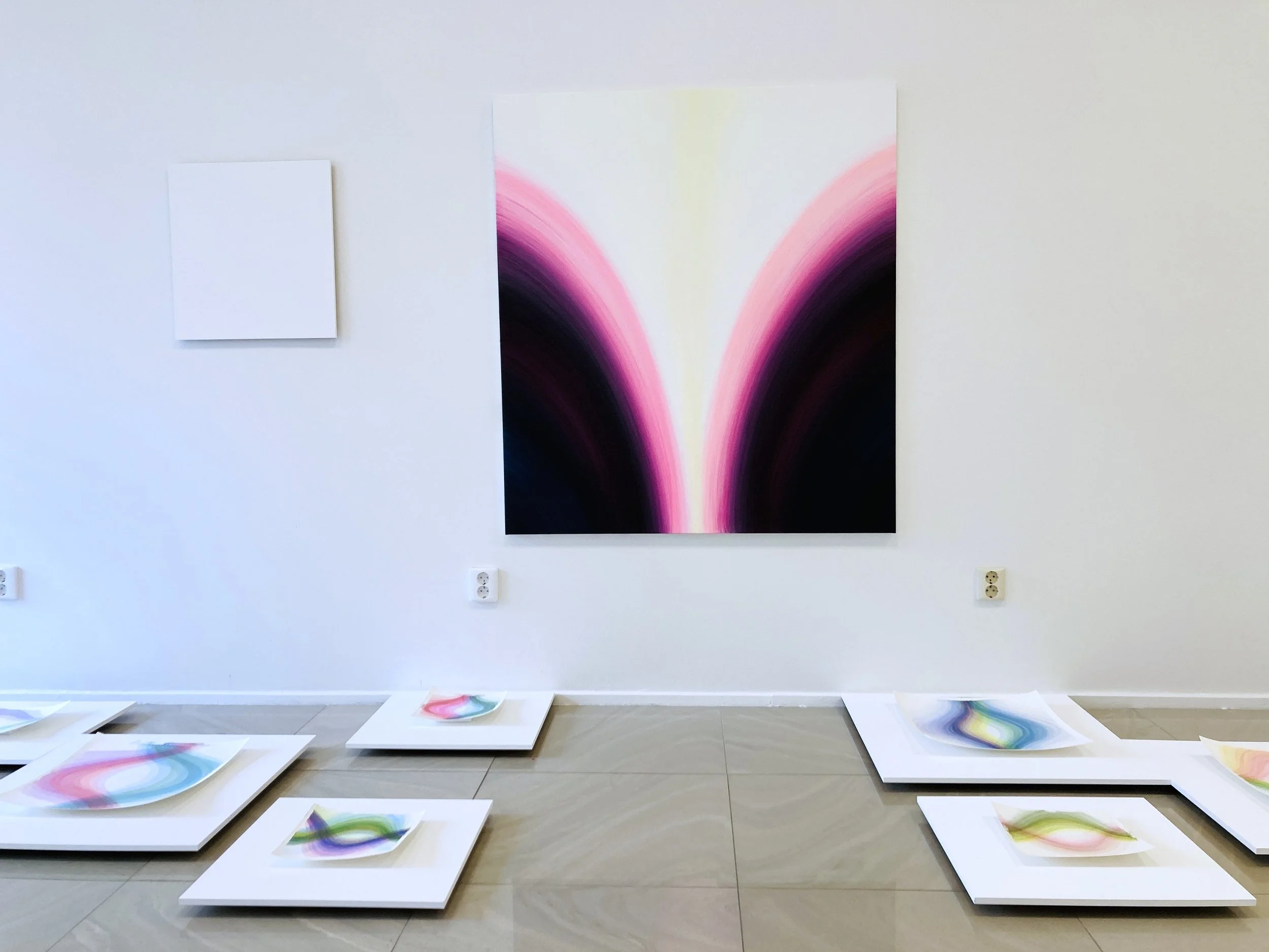 Sense and Sensuality, Olseröds Konsthall, Olseröd, 2022, paintings on the left made by Duda Bebek, photo: Margareta Svensson